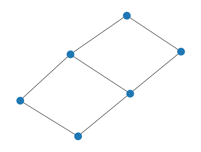 import rustworkx.generators from rustworkx.visualization import mpl_draw graph = rustworkx.generators.grid_graph(2, 3) mpl_draw(graph)
