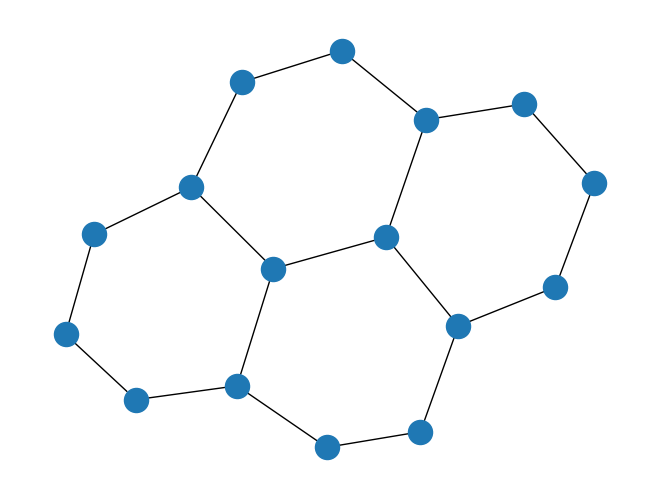 import rustworkx.generators from rustworkx.visualization import mpl_draw graph = rustworkx.generators.hexagonal_lattice_graph(2, 2) mpl_draw(graph)