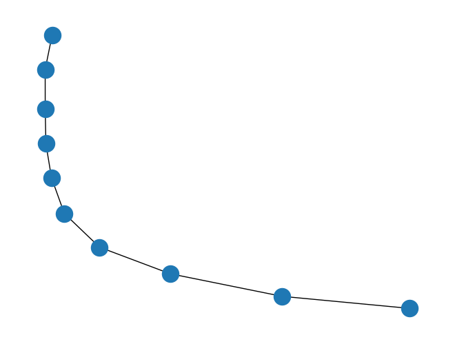import rustworkx.generators from rustworkx.visualization import mpl_draw graph = rustworkx.generators.path_graph(10) mpl_draw(graph)